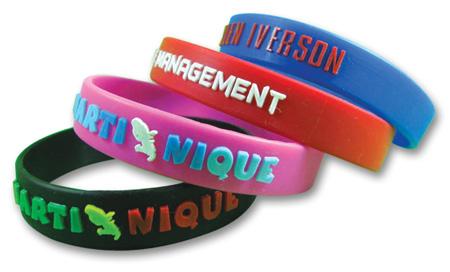 Embossed silicone bracelet is type of opposite of debossed wristband. Embossed bracelets are where the text, logo and messages are raised above the surface of the wristbands. It can be alternate colored message.